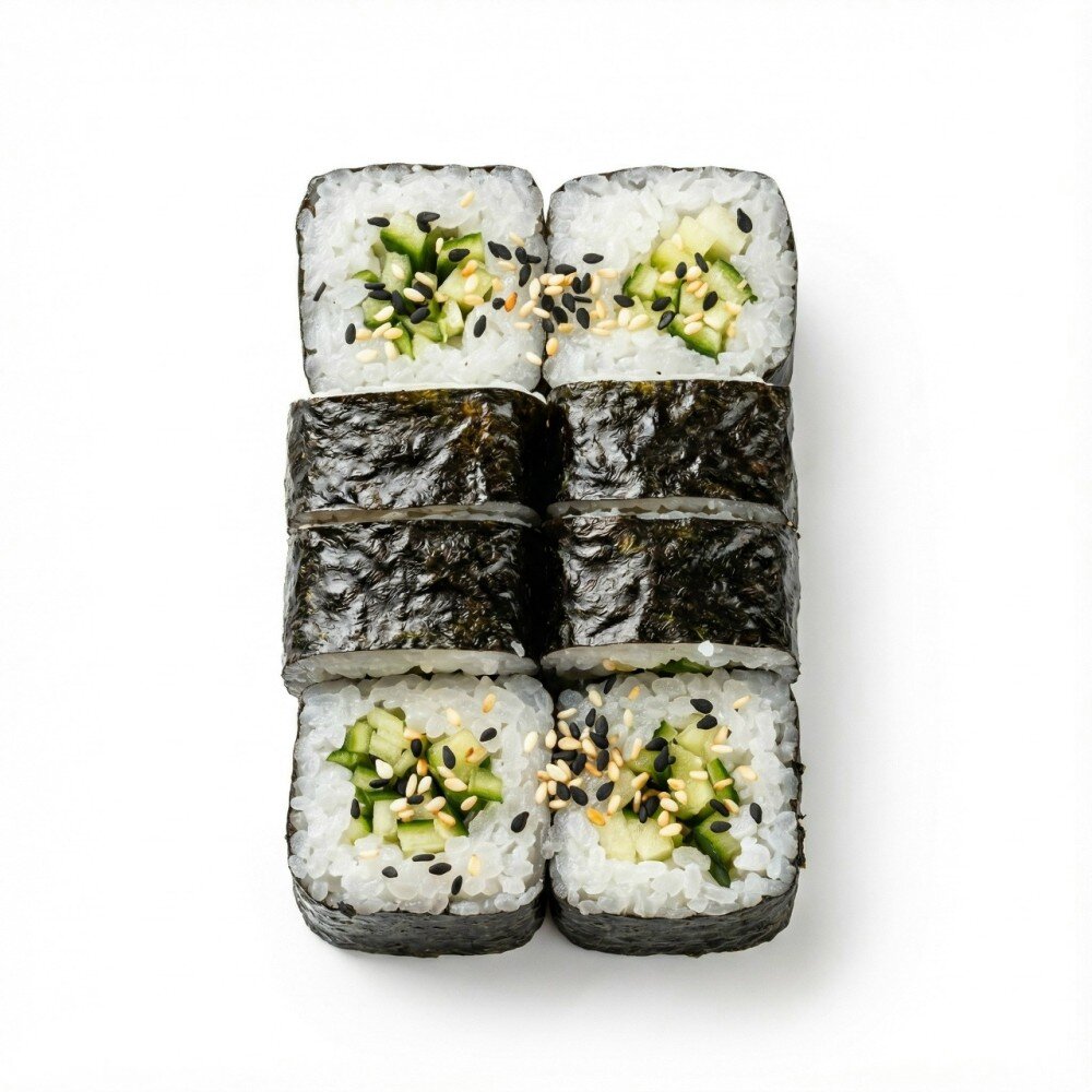 Состав :Ролл с огурцом. Посыпан кунжутом.