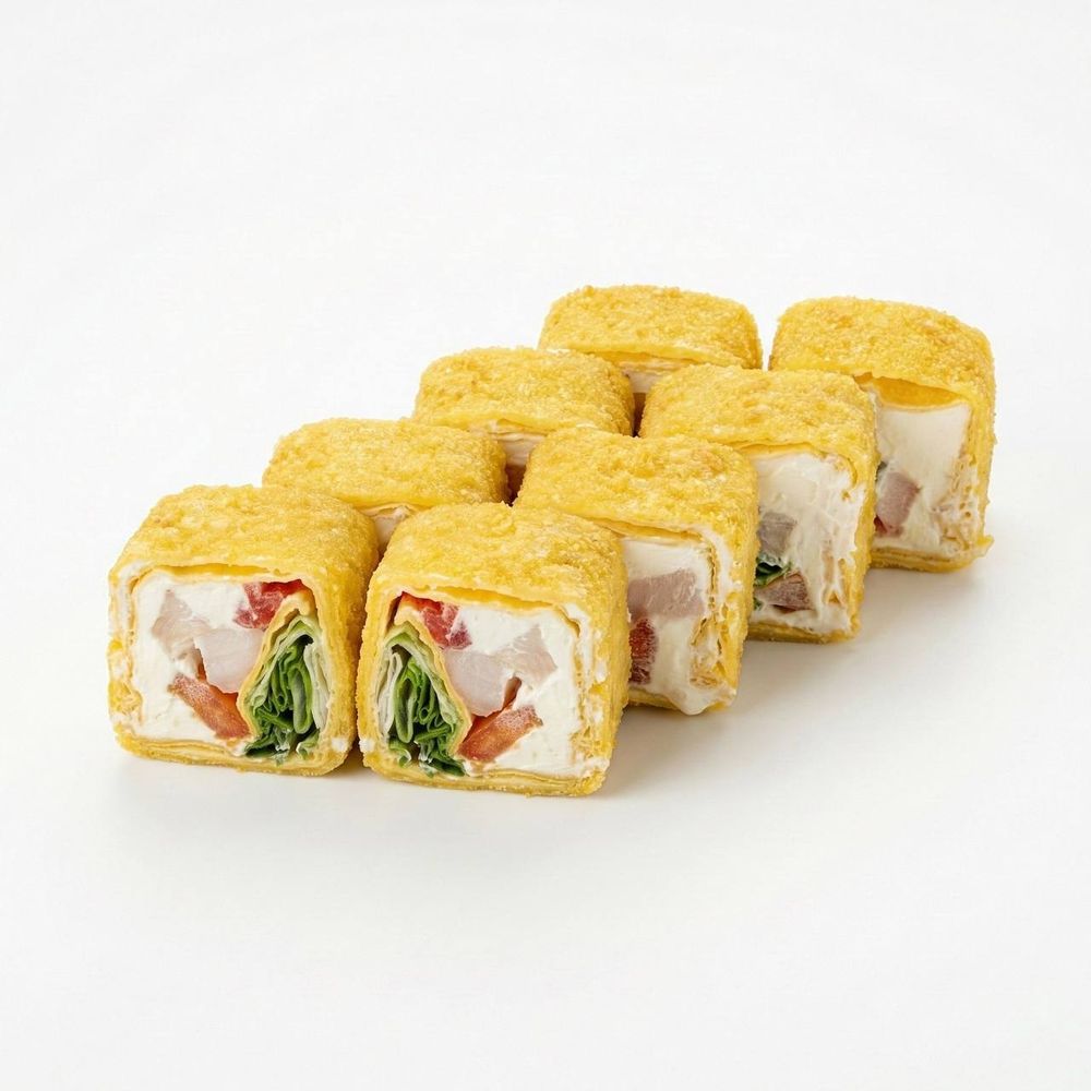 Тортилья, курочка, сыр сливочный, лук зеленый, помидор, салат Айсберг, соус Цезарь