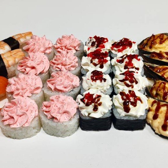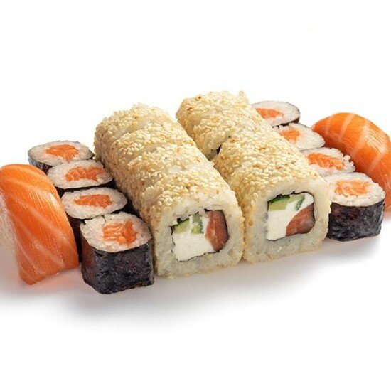 Фила классик, Калифорния с крабом ,Калифорния с лососем, Суши с лососем 4шт